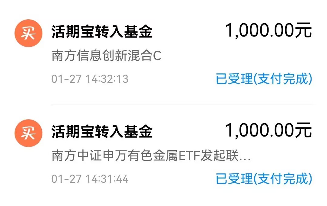 1、$南方中证申万有色金属ETF发起联接C(OTCFUND|004433)$,买入1000元