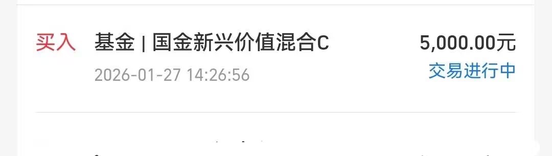 3、$国金新兴价值混合C(OTCFUND|014819)$,买入5000元
