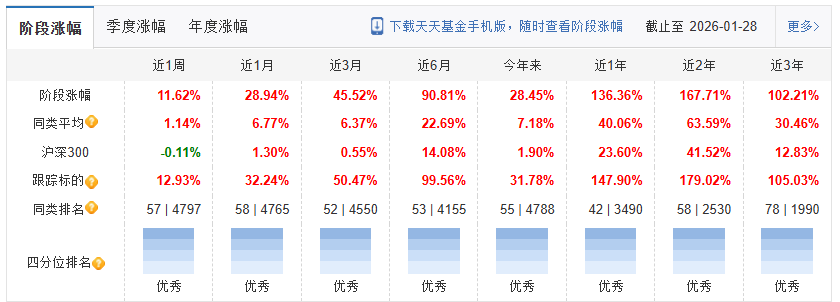 我此前就陆续布局了一些资源类的基金产品,经过持续跟踪观察,发现$南方中证申万有色金属ETF发起联接C(OTCFUND|004433)$表现更突出,远超同类平均,近一年涨幅翻倍达到136%,今年不到一个月涨幅已经达到28.45%。