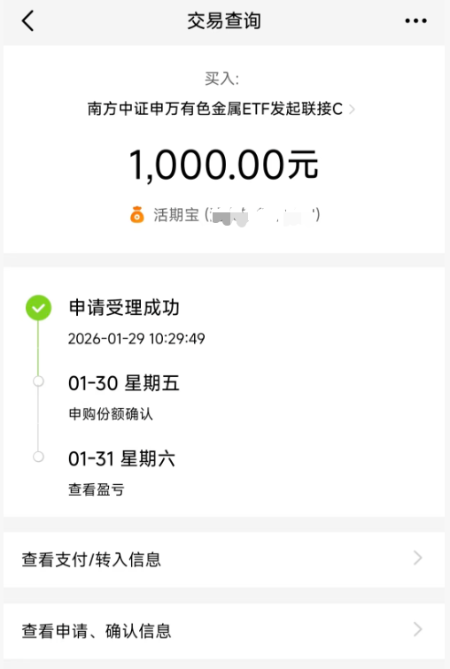 行情演绎至今,有色金属的大主升浪趋势依旧在持续,不过短期内还需要把握上车时机,分批买入会更稳妥一些,今天趁着震荡,我先加仓一笔$南方中证申万有色金属ETF发起联接C(OTCFUND|004433)$。