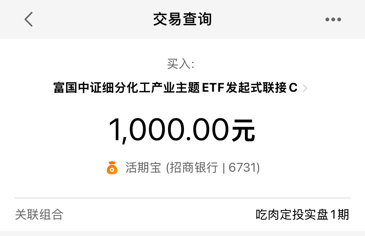 今日定投1000元富国化工指数(020274),$富国中证细分化工产业主题ETF发起式联接C$ 化工这一波下跌是被有色下跌和原油价格短期上涨带下来的,化工用品全年涨价的逻辑不变,连续下跌几年后估值尚未完全修复,上涨空间较大,继续逢低提升仓位。市场上涨的时候皆大欢喜,下跌的时候才最考验心态,牛市多暴跌,坚定信仰。