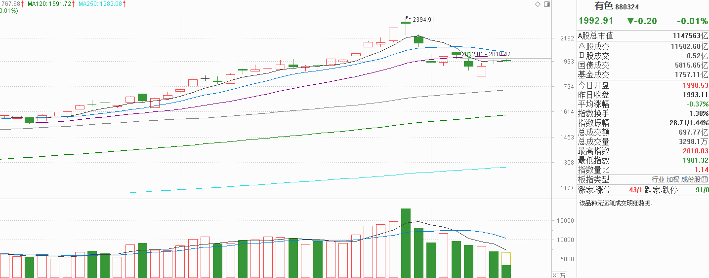 有色金属:遇阻震荡不休!均线走平是支撑还是假象?资金流入才是王道