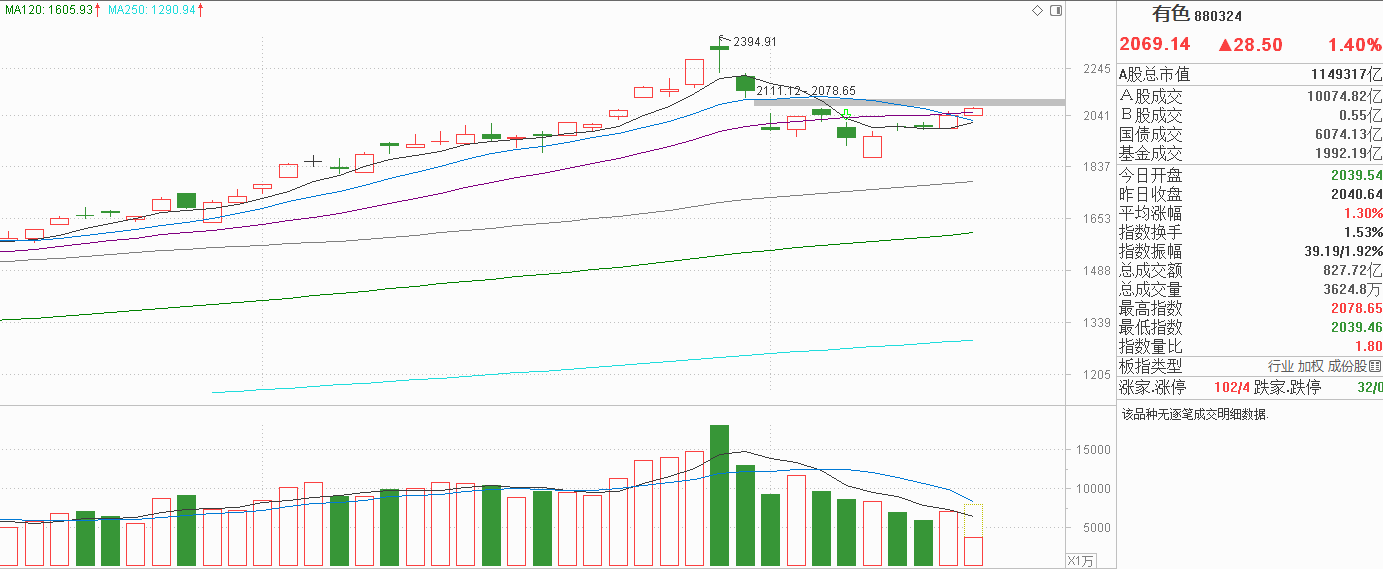 有色金属小阳走高:10天线20天线阻力已收复!缓涨不急跌才是王道