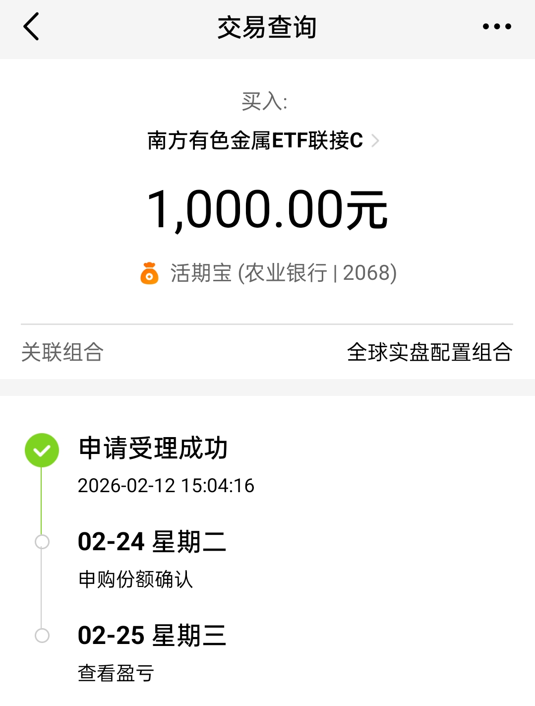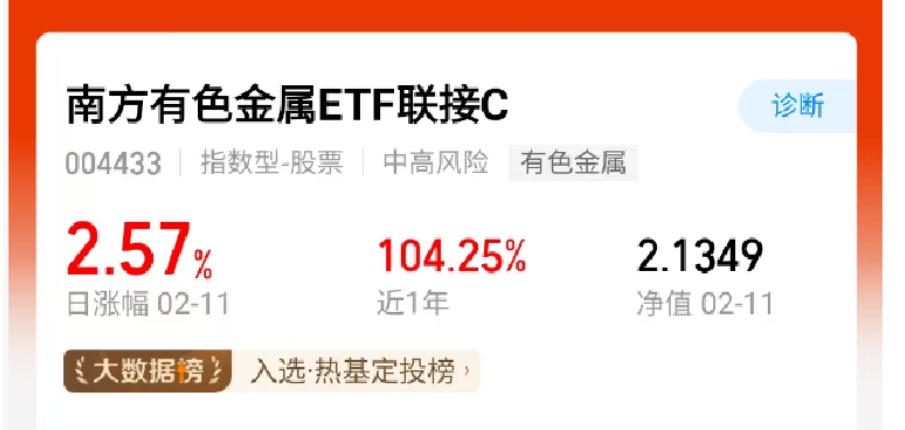 既然行情这么好,咱们怎么上车最稳?我的建议是,别去追高那些波动大的个股,直接盯住$南方有色金属ETF联接C(OTCFUND|004433)$。这基金跟踪的是中证申万有色金属指数,把铜、铝、黄金、稀土这些核心品种全打包了,相当于一键买入了整个行业的“核心资产”。而且它还是C类份额,没有申购费,持有7天以上赎回费也免了,特别适合咱们这种想抓波段、做短线的选手,交易成本低,进出灵活。在现在这种震荡行情里,抓主线就得靠这种工具,既能吃到板块上涨的红利,又能规避个股踩雷的风险,性价比超高。兄弟们,机会就在眼前,千万别手软,跟着主力一起冲!