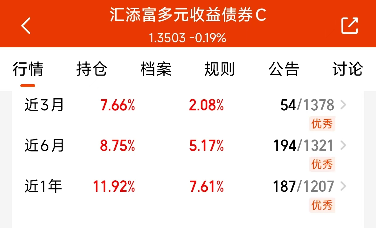 最近市场这个走法真是让人又爱又怕。指数往上冲的时候心里痒痒的,但看着那些波动大的品种又不敢伸手。这时候就发现像$汇添富多元收益债券C$(470011)这类产品的好了——它用0-20%的股票仓位参与市场,剩下的主要投债券等相对稳当的资产。特别是它现在侧重科技方向的配置,但不是简单重仓持有,而是根据市场变化灵活调整。这种“固收+”思路,既不会因为完全避开权益而错过行情,也不用整天提心吊胆看波动,适合想稳步参与这轮行情的资金。#创业板指跌幅至3%#