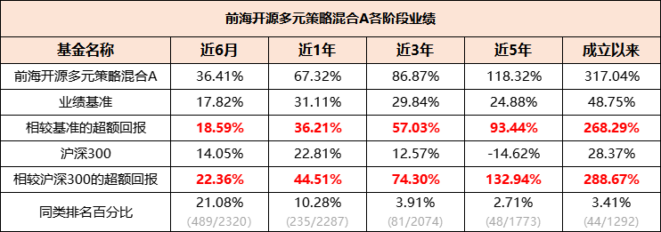 要知道,前海开源多元策略混合的成立时间是2017年7月3日,也就是说,该基金在成立后的每个完整年份都是跑赢沪深300指数的。