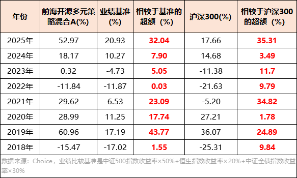 从2018年的熊市,到2019-2020年的核心资产牛市、2021年的新能源赛道浪潮、2022-2023年的震荡调整,再到2024年四季度以来以AI算力与高端制造为主线的结构性行情,每一次市场环境的剧变中,前海开源多元策略混合都能把握方向,实现超额。