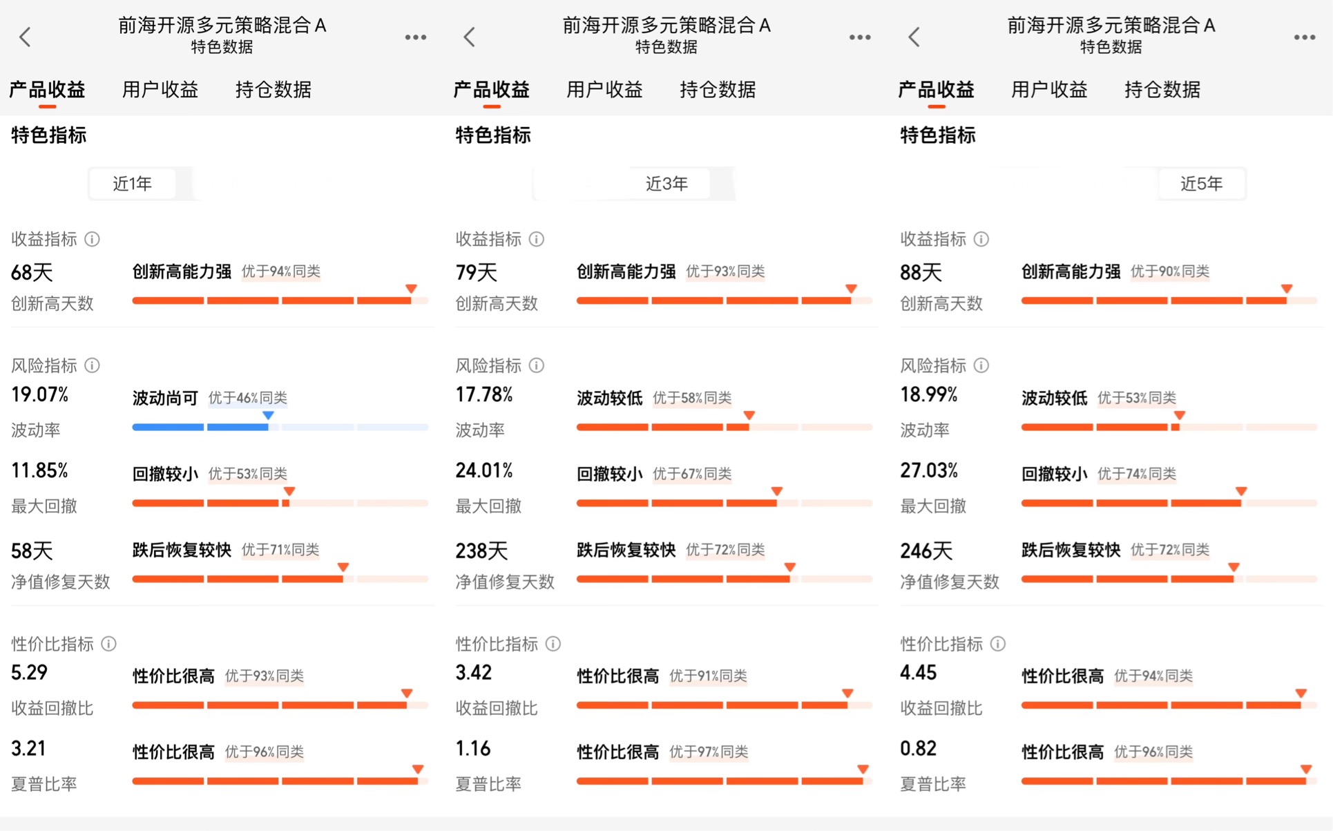 投资的核心是“风险调整后收益”,前海开源多元策略混合A在这方面的表现同样出色。从风险指标来看,它的近一年最大回撤仅为11.85%,而同类产品平均回撤高达46.98%;波动率19.07%,优于46%的同类基金;收益回撤比5.29,夏普比率3.21,都处于同类基金的前10%水平。这组数据说明,它在获取高收益的同时,有效控制了下行风险,是典型的“高性价比”产品。这种风险控制能力来自两个方面:一是大类资产的动态平衡,通过调整股票和现金的比例应对市场波动;二是个股层面的分散化投资,前十大重仓股占比仅31.95%,远低于行业平均水平,避免了单一个股暴雷的风险。此外,基金还设置了严格的止损机制,当个股跌幅达到一定阈值时会自动卖出,进一步降低了组合的波动性。