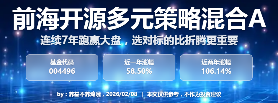 对于我这种普通人而言,基金长期投资的核心就是选对“长跑达人”基,然后安心持有。前海开源多元策略混合A(004496)既有连续跑赢大盘的硬业绩,又有契合长期趋势的配置思路,还有专业的基金经理和亲民的费率,完全契合我的投资需求。