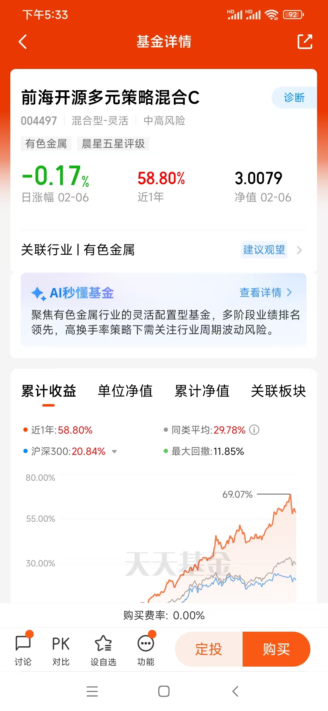 同时,这只基金的费率也很亲民,每年0.70%的管理费率和0.1%的托管费率,远低于同类基金的平均水平,A类份额持有两年还能免赎回费,对于打算长期持有的我来说,能有效降低投资成本,让长期收益更实在,而前海开源基金的雄厚实力,也为基金的长期运作提供了坚实的投研支撑。