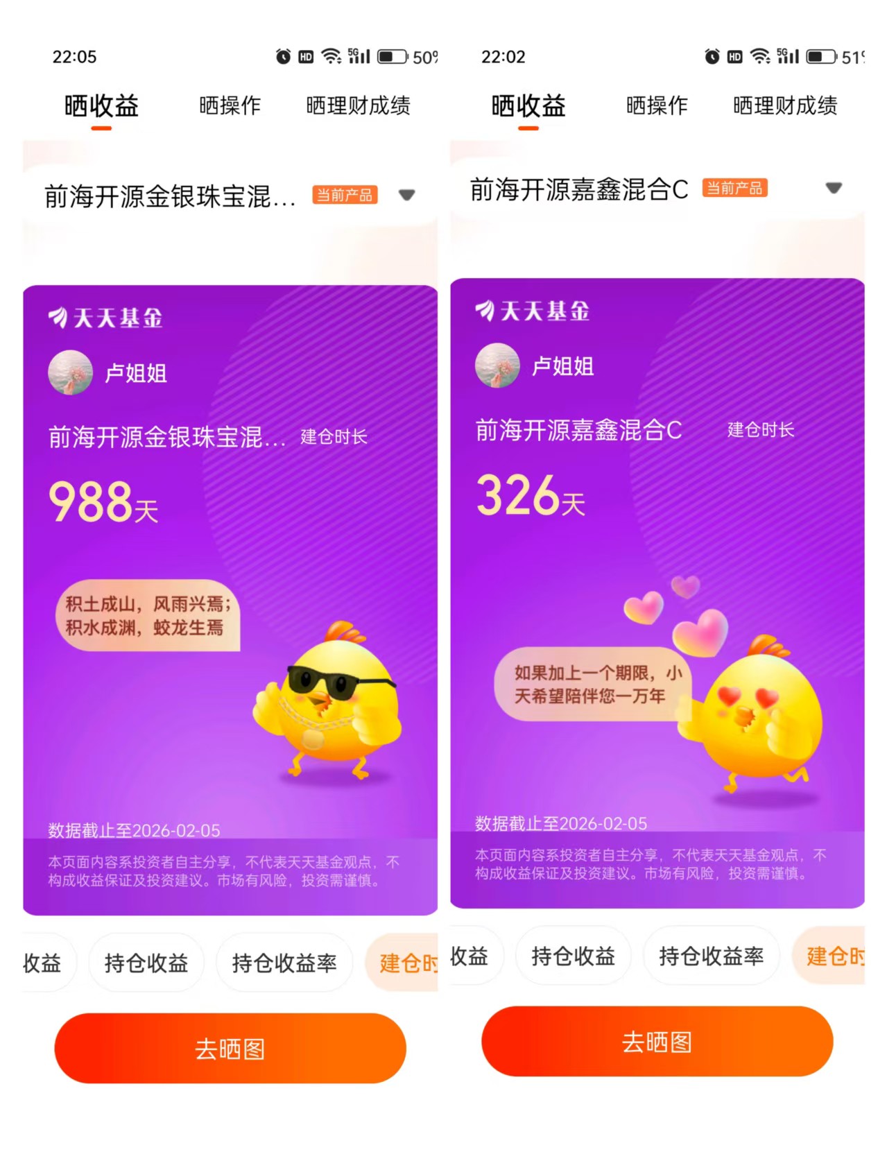 #长跑达人请出列#周未没事,翻开天天基金看看自己的投资成绩,看看我持有的前海开源金银珠宝988天,收益率132.21%,前海开源嘉鑫混合持有326天,收益可观,已止盈再投,对于自己操作甚是得意;可惜重仓医药板块还仍在亏损30%左右,新能源板块倒是减亏不少,经历了2021年高位下跌调整3年多,让我们投资者叫苦不迭,现如今终于扬眉吐气。