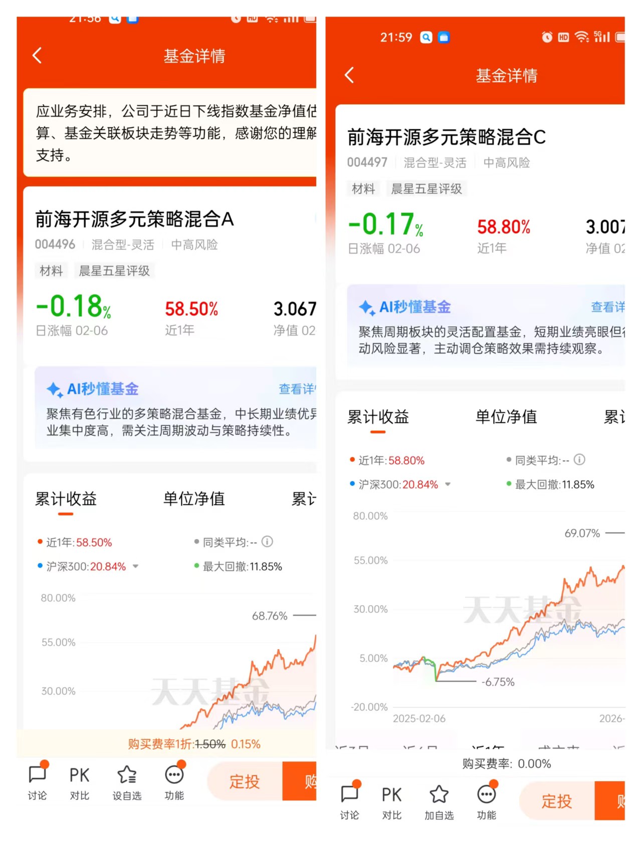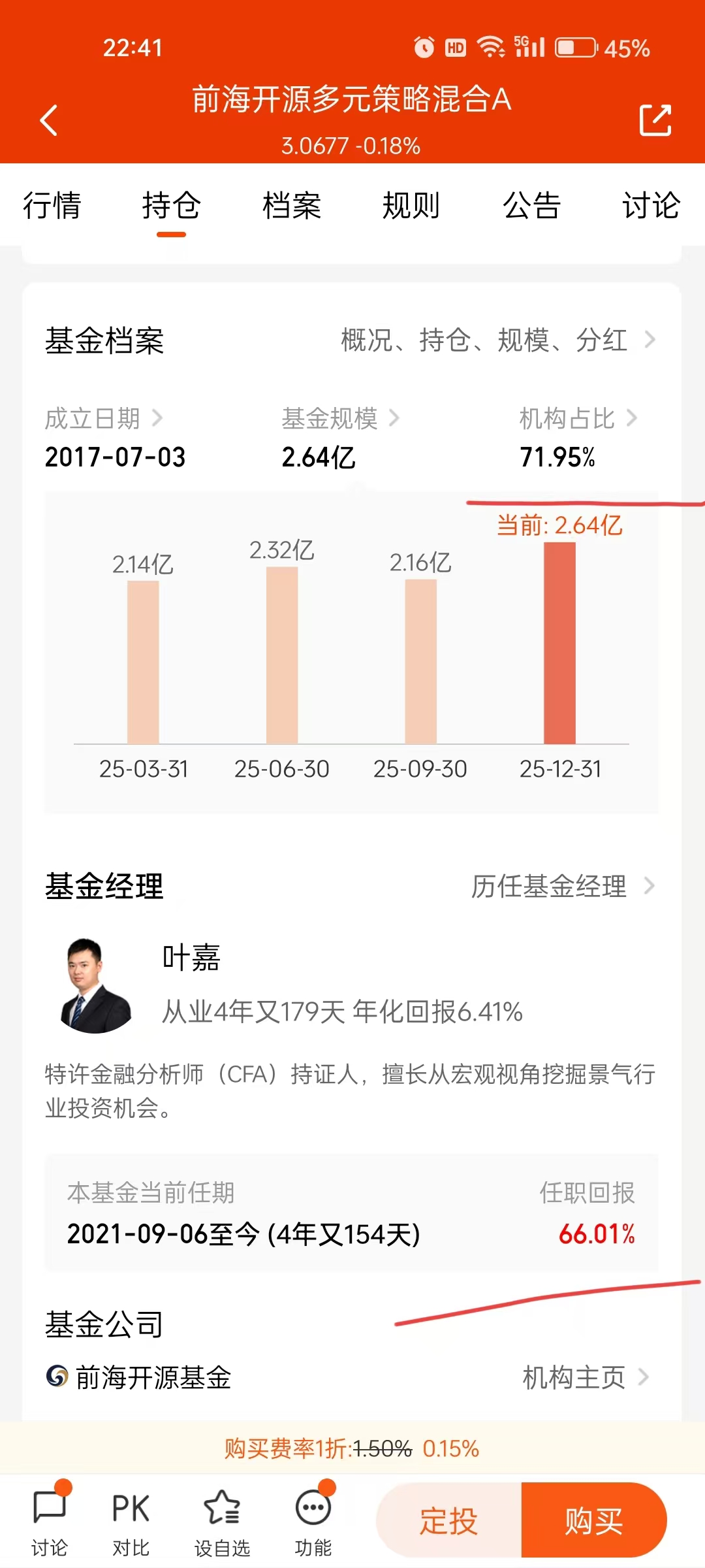 3,高夏普+低回辙。前海开源多元策略混合A近一年、近三年、近五年夏普比率全部超过了96%以上同类的基金,且他的权益仓位波动比较稳定,过去连续六期的股票占比均在70%以上,最新一期2025Q4股票占比是73.24%。这只近三年夏普比率非常优秀、机构持仓高达71.95%,持仓创新高,回撤控制也很好、跟上机构买入走起,长期底仓配置挺好的,静水流深既赚钱又低回辙。