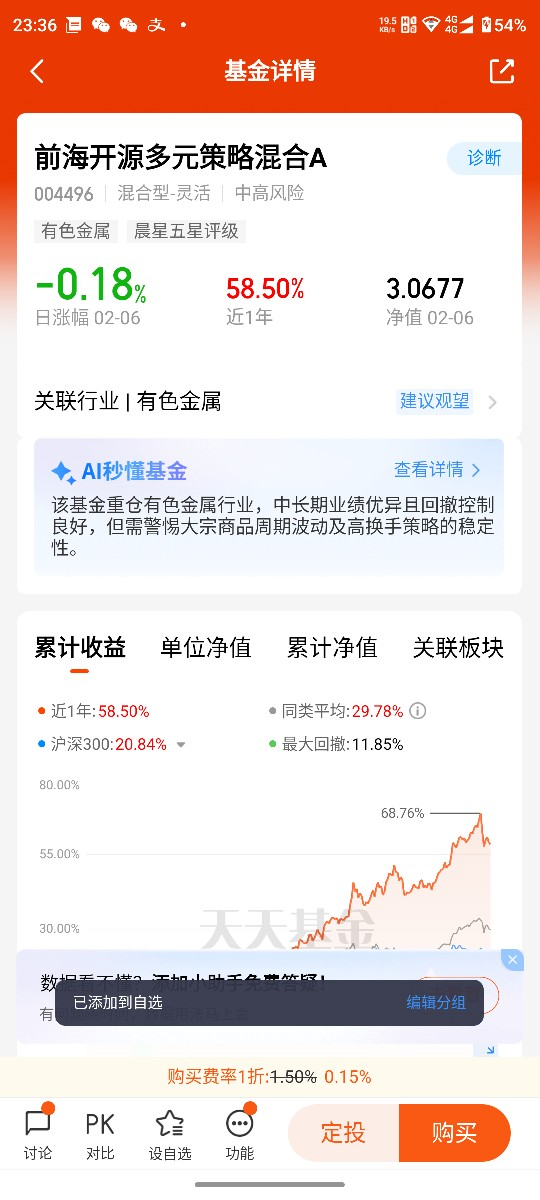 初入投资市场时,我和大多数人一样,被短期涨幅、热点题材裹挟,追过爆款主题基金,押过单边上涨赛道,看似热闹非凡,实则账户波动剧烈,牛市赚的钱,熊市悉数回吐,甚至亏损本金。那段时间我深刻明白,A股市场牛短熊长、震荡频繁,单一资产、单一策略根本无法抵御周期波动,“不把鸡蛋放在一个篮子里” 不是一句空话,而是普通投资者活下去、赚稳钱的核心准则。我开始放弃短期投机思维,转向寻找能穿越牛熊、攻守兼备、长期业绩稳健的均衡型基金,前海开源多元策略混合A,正是在这个阶段走进我的视野,也成为我投资体系里最靠谱的“长跑伙伴”。