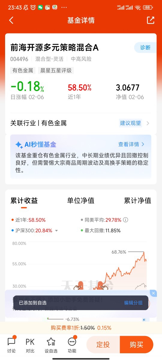 持有这几年,我最大的体会就是:长期投资,拼的是认知,更是耐心。前海开源多元策略混合A不是那种短期暴涨的基金,它的收益是慢慢积累、稳稳增长的。从2020年到现在,我的持仓收益已经超过60%,虽然比不上那些短期翻倍的热门基,但胜在踏实、安心。期间经历过2021年的市场调整、2022年的震荡下行、2023-2025年的结构性行情,这只基金都能稳住回撤,慢慢修复净值,甚至在很多年份跑出超额收益。