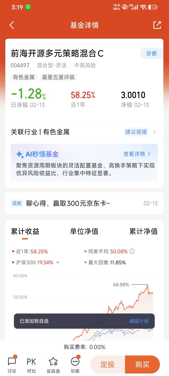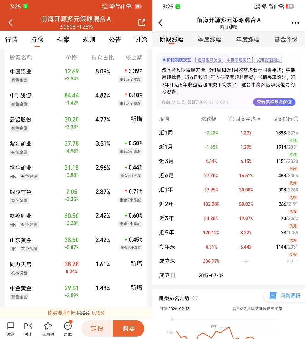 短期看,市场肯定有波动。2月13号那天有色板块大跌,这只基金也跟着回调了 。但我一点也不慌——深度价值的逻辑,不会因为一天的涨跌就改变。