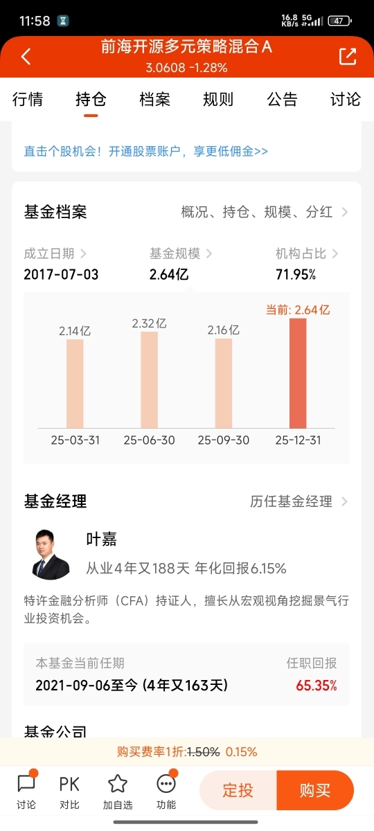 相信专业,给予信任。叶嘉的深度价值投资框架已经经过市场检验,我会将信任交给时间,相信基金经理的专业判断与成熟的投资体系。