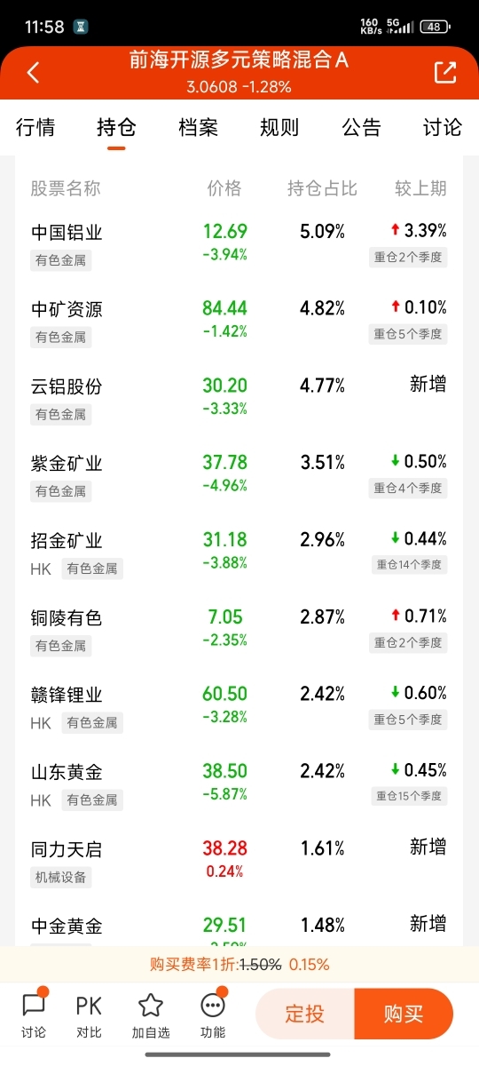翻开2025年四季报,前十大重仓股清一色是资源品龙头: