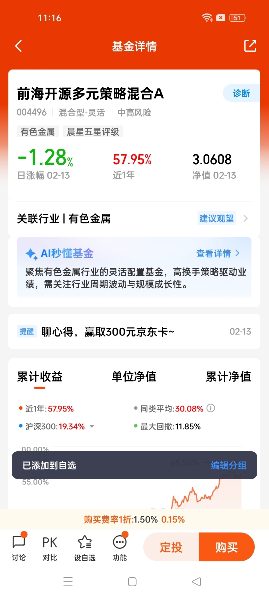 当前市场处于震荡磨底阶段,投资者情绪逐步修复,正是布局优质周期基金的窗口期。$前海开源多元策略混合A$ 立足长期景气赛道,以专业策略应对短期波动,在行业持续爆发过程中具备持续盈利潜力。对于追求中长期稳健收益、希望配置周期核心资产的投资者,该基金能够有效把握有色金属投资机遇,是当前市场环境下兼具进攻性与安全性的优质选择。