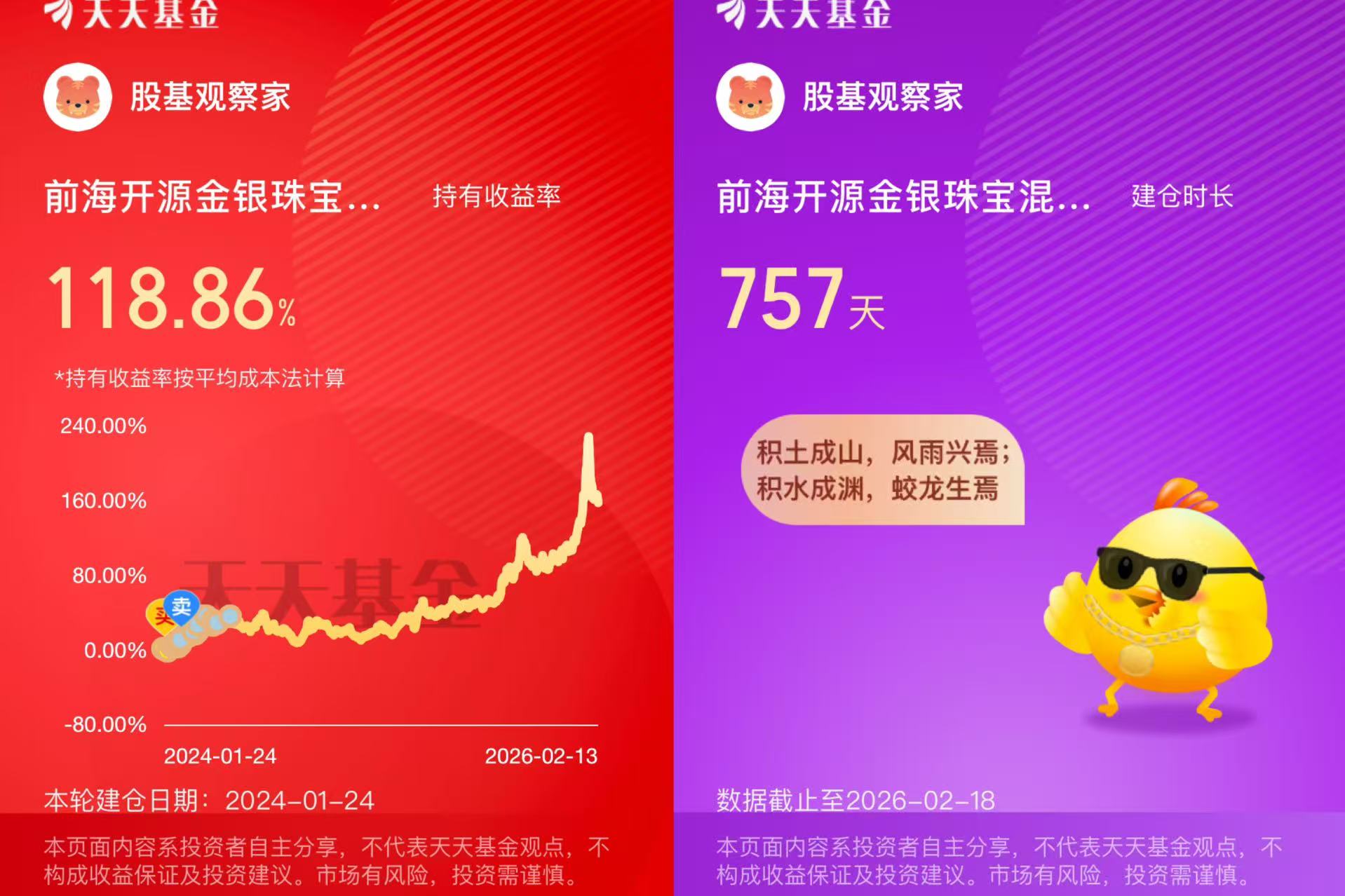 同时我还坚定持有吴国清经理的前海开源金银珠宝混合A(001302)至今,已经超过757天,同样获得超过118.86%的良好投资体验。