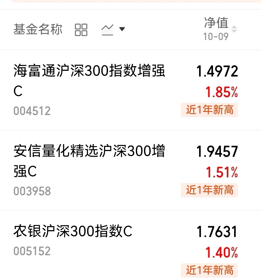 $海富通沪深300指数增强C$ 今天大涨1.85%,强者恒强,比指数1.48%涨的多,现在牛市买宽基还是得买增强型的,收益更高一些。