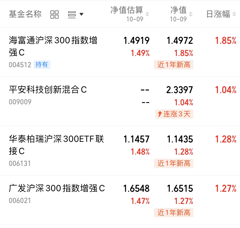 $华泰柏瑞沪深300ETF联接C(OTCFUND|006131)$上涨1.28%,