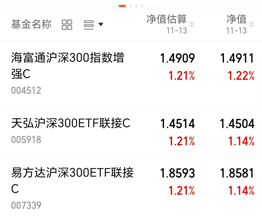 $易方达沪深300ETF联接C(OTCFUND|007339)$上涨1.14%。