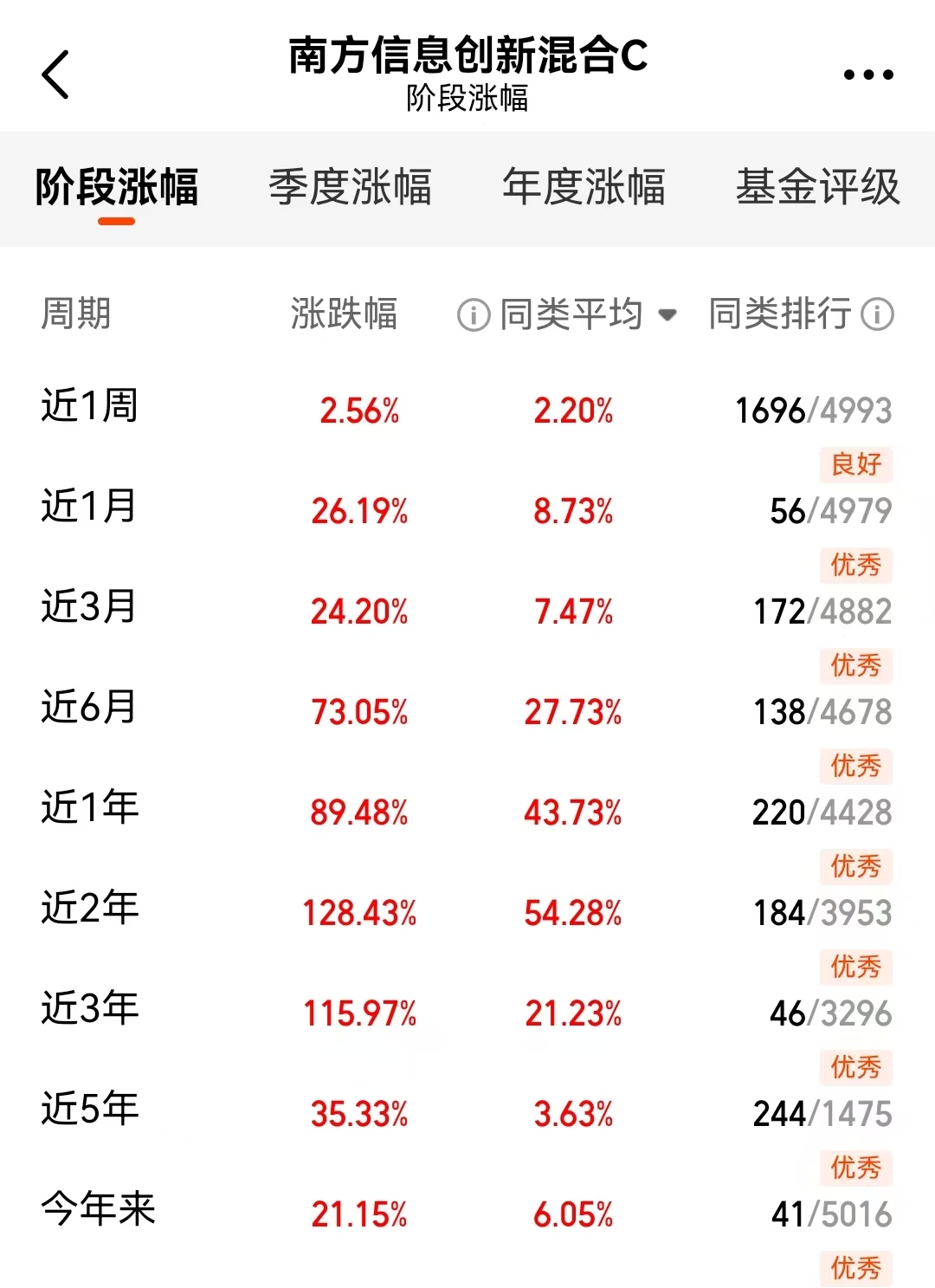 看到$南方信息创新混合A$(007490)近半年涨了73%以上的数据,我还是有点心动的。一个月26%的增长,加上今天预估的表现,说明它最近确实处在一种活跃的状态。我仔细看了它的布局,重心是在半导体领域,这个领域目前正处在一个比较关键的发展阶段,周期的变化可能带来机会。我觉得是现在值得关注的一个理由。在市场当前的环境下,我做了点配置,认为这个启动的窗口还在。#