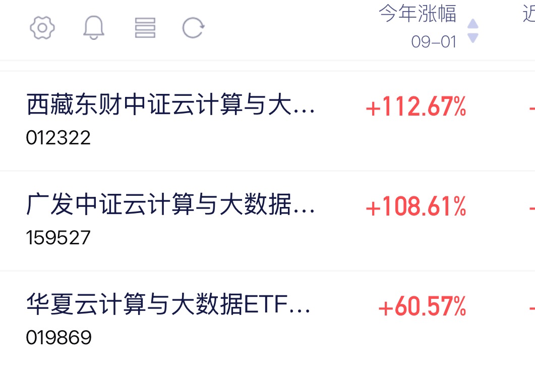 $广发中证云计算与大数据主题ETF$今年涨幅108.61%还可以的!