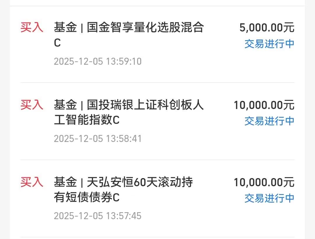 3、$国金智享量化选股混合C(OTCFUND|018824)$,买入5000元
