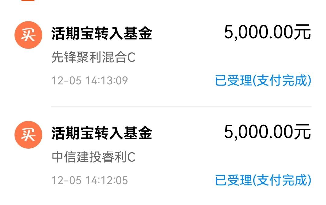 2、$先锋聚利混合C(OTCFUND|004834)$,买入5000元