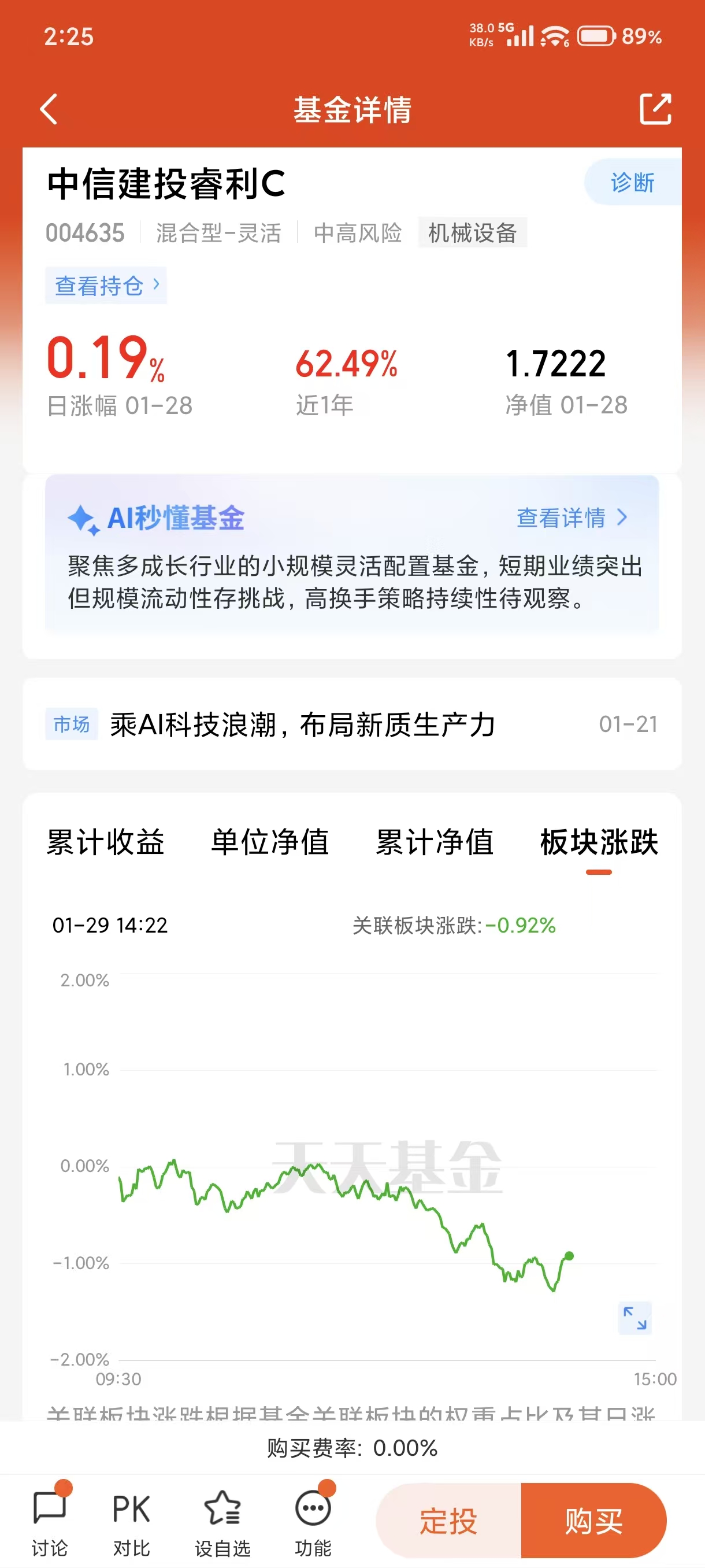 今天我选择买入2000元中信建投睿利灵活配置混合C(004635)。这只基金采用“主动+量化”相结合的策略,自上而下的资产配置方法,结合量化多因子模型进行行业均衡配置和个股精选,近一年上涨了62.49%,在同赛道中排名均优秀。买量化主要还是想捕捉超额,我会持续加厚这只基金的仓位。$中信建投睿利C(OTCFUND|004635)$