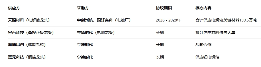 宁德时代等巨头通过长单与核心供应商深度绑定,形成 “电池-材料”利益共同体。