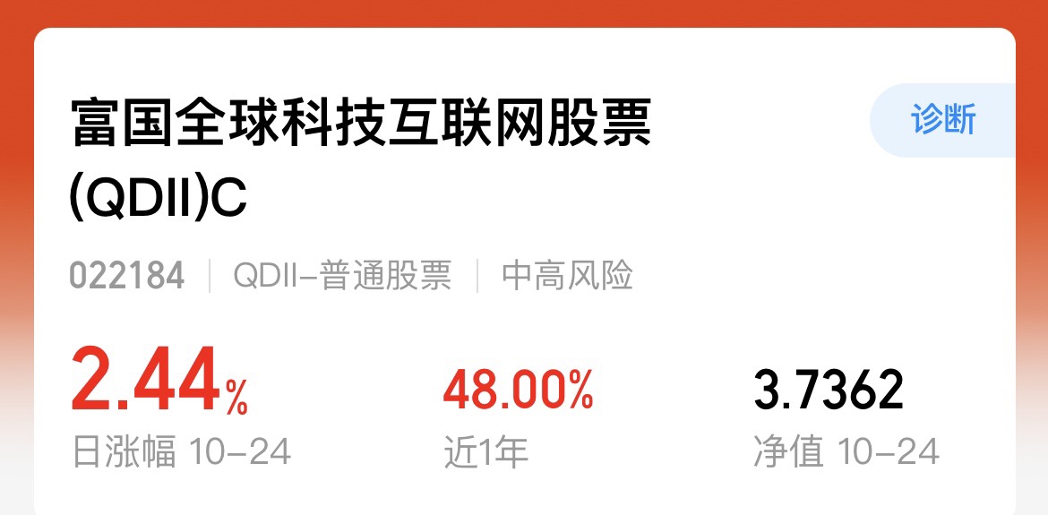 这只全球科技基太会涨了!富国全球科技互联网C昨晚飙2.44%,今天估值又涨超2%