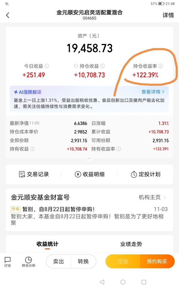 $金元顺安元启灵活配置混合$感谢缪总,我的收益又上一个台阶