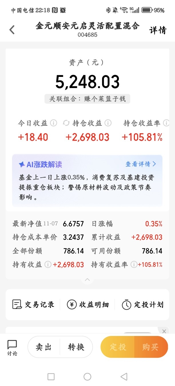 持有三年多,竟然翻倍了,感谢良心经理的辛勤付出。可惜买太少了