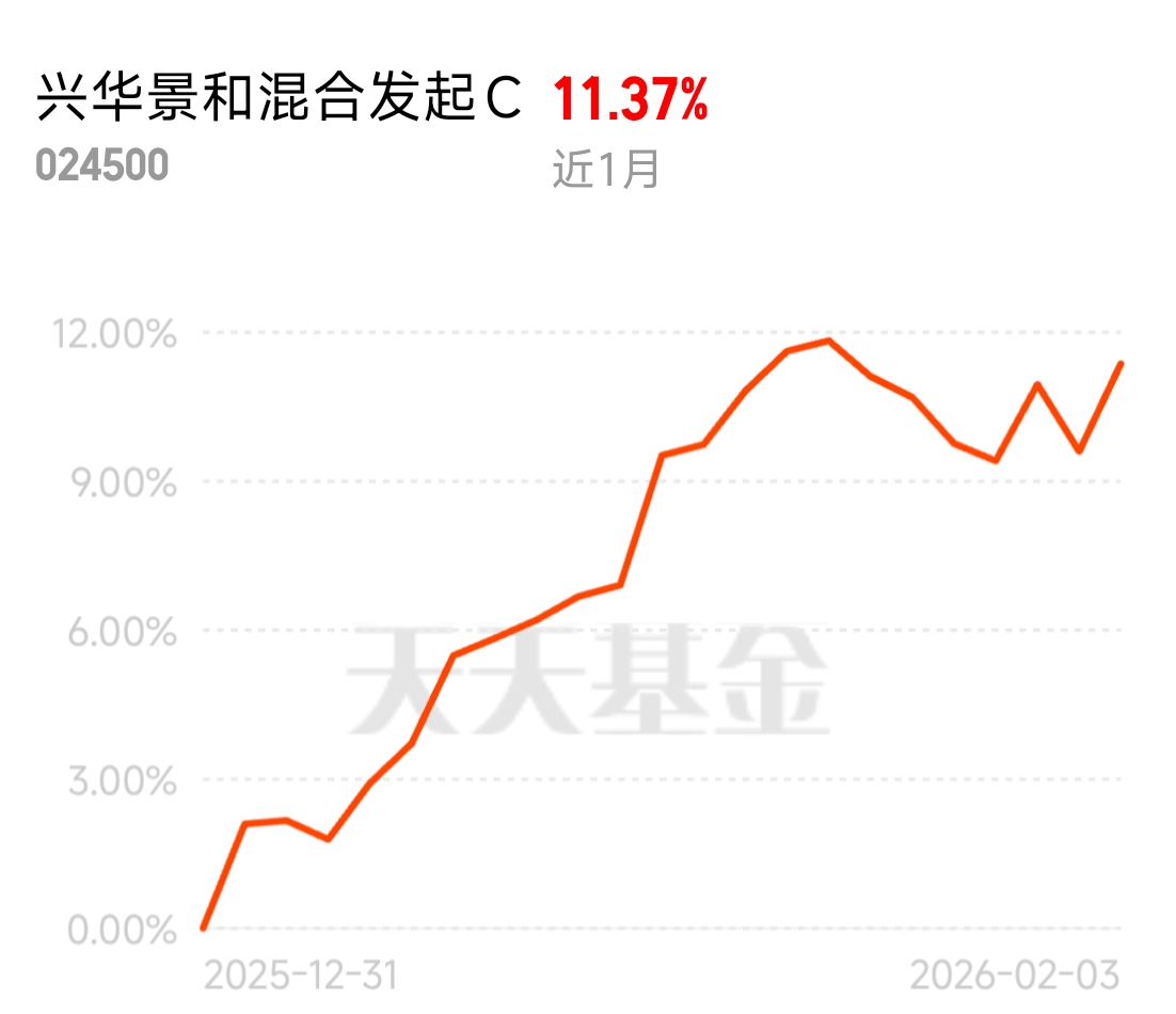 市场震荡,它却连涨。$兴华景和混合发起C$昨日1.62%,今日继续看涨。六月成立