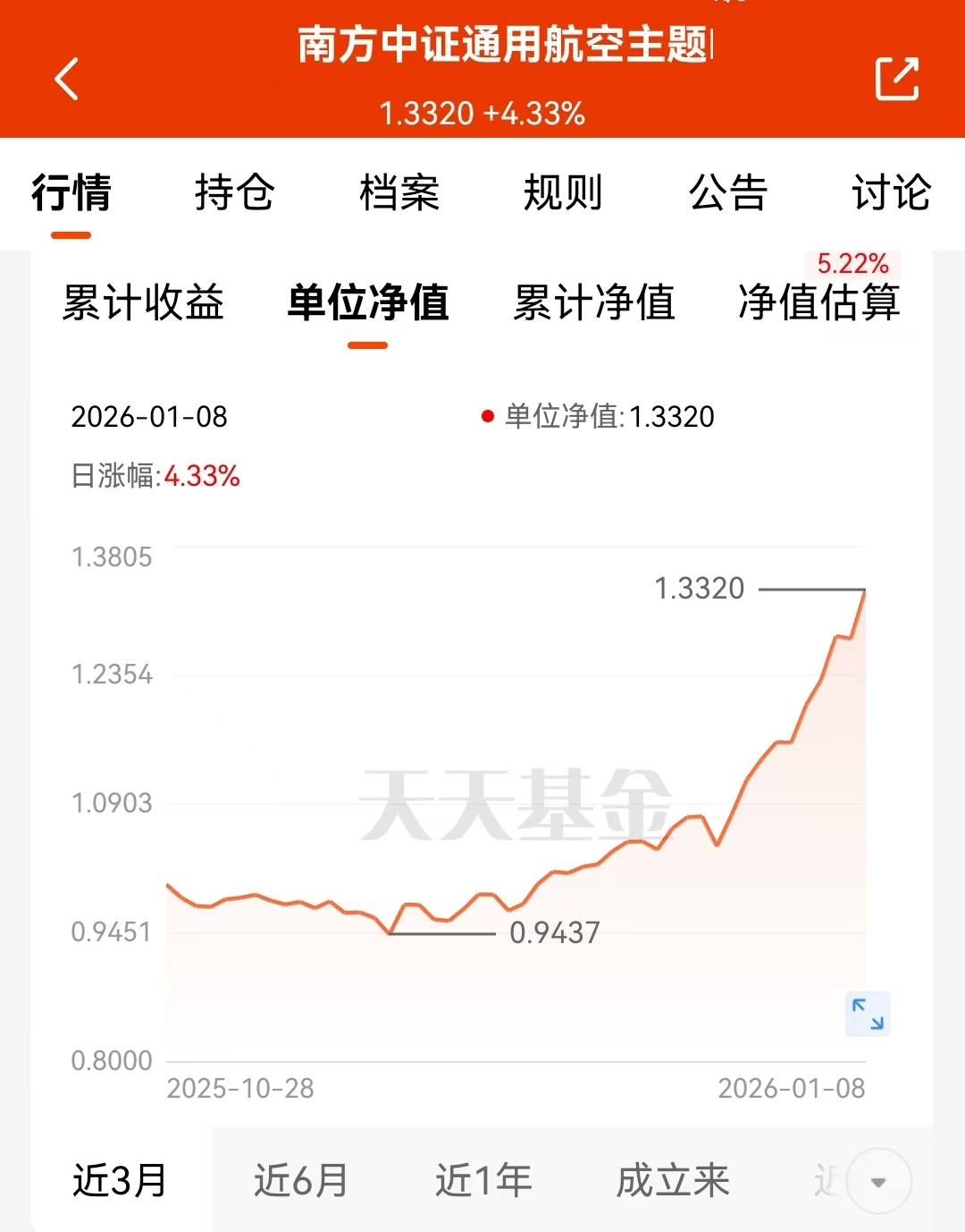 跟风买了些$南方中证通用航空主题ETF发起联接A$(025692),纯粹是看它最近太“红”了。数据摆这儿:一个月31.32%的涨幅,同类排第一,想不注意都难。而且它不“费钱”,综合费率是同类最低档,划算。感觉整个行业的风向变了,低空经济各种应用场景像打开了盒子,发展节奏明显快了。看今天这预热,估计还能飘红,要搭上这趟车,这个产品瞄得挺准,后面天地还广阔,值得琢磨一下。#商业航天持续火爆:2026或迎火箭发射大年#