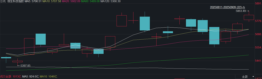 港股方面,终于是表现比大A好了,本周三连阳,随着上周美就业数据疲软,几乎算是确定了美联储降息就是本月了,黄金现在已经先起舞了,下一个估计就到咱们港股了。