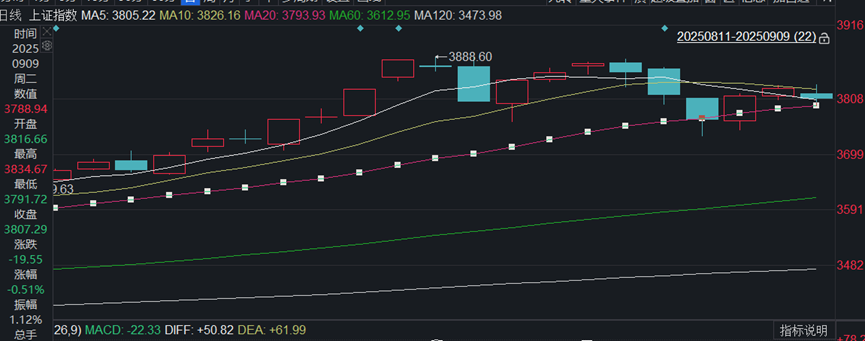 又震了,主板盘中触及20日线,最低跌破3800到3791,好在尾盘还是收回来了,目前算是稳住趋势,但后面肯定也有反复,进入九月开始上难度了。