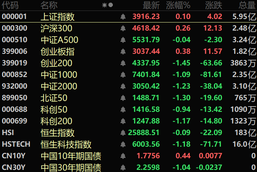 市场冲高回落,三大指数盘中一度集体翻绿。沪深两市成交额1.93万亿,较上一个交易日缩量1417亿,自9月10日以来再度失守2万亿。