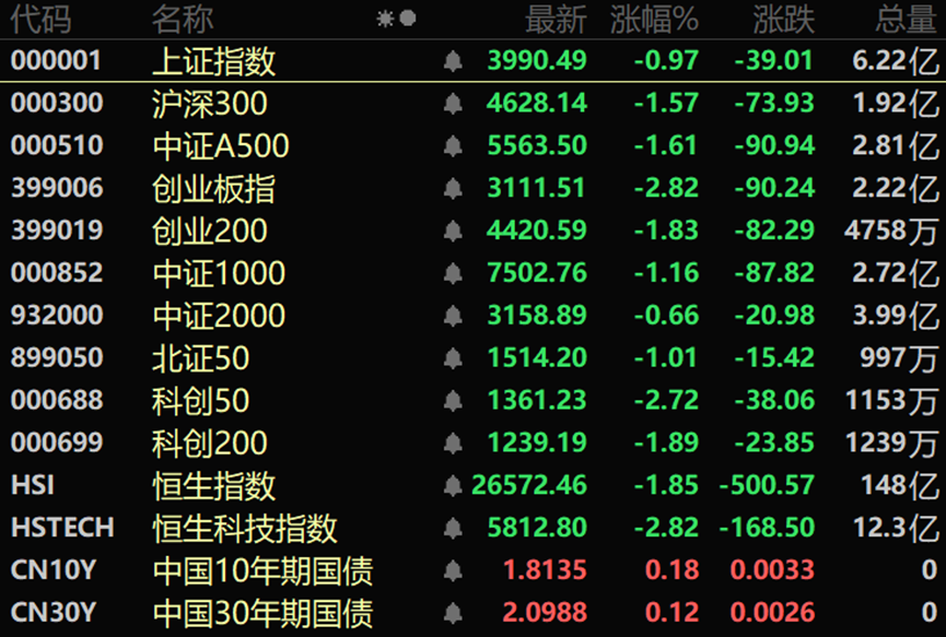市场全天震荡调整,沪指跌近1%,创业板指跌近3%。沪深两市成交额1.96万亿,较上一个交易日缩量839亿。