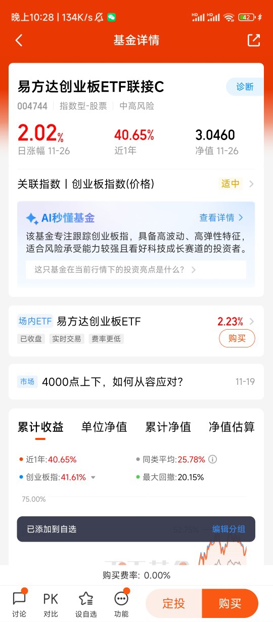 4000点上下不慌,这样操作易方达创业板ETF联接C就对了4000点来回晃,不少