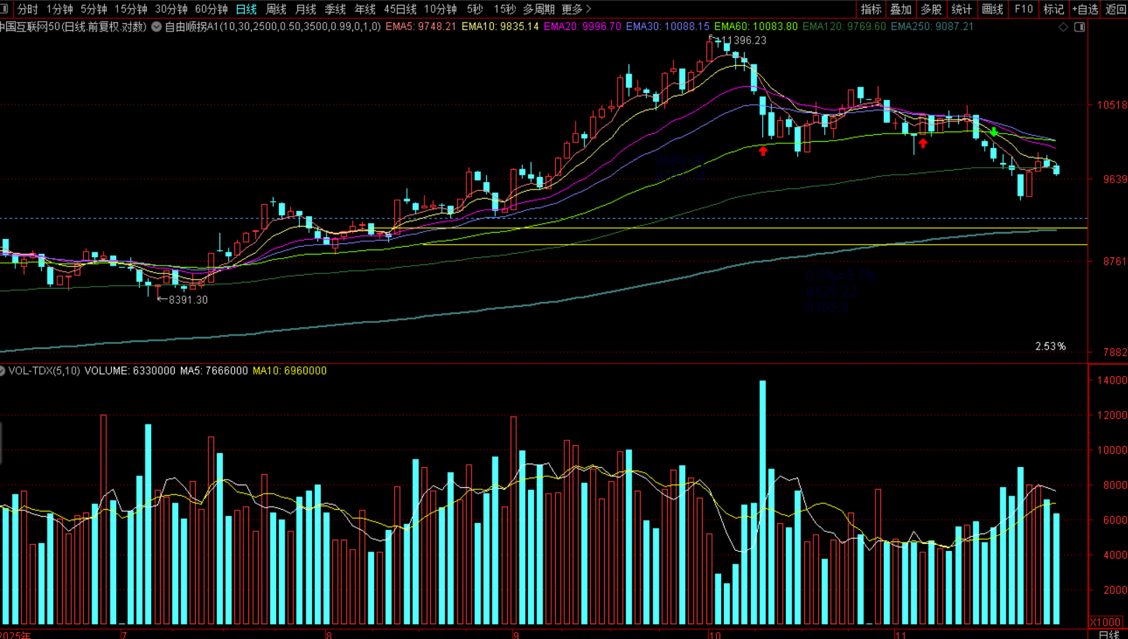 中概互联,目前是下降趋势,因此我是在做左侧交易。