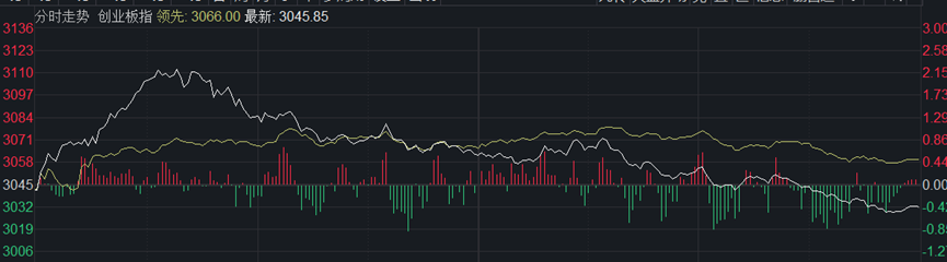 创业板则是冲高回落午后翻绿,早盘的时候是一度涨超2%的。