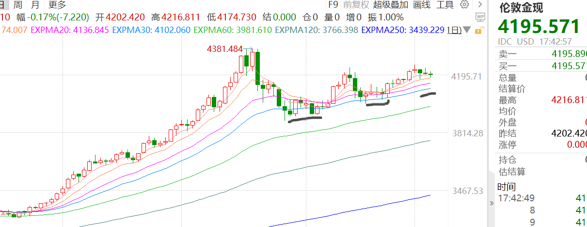 伦敦金回到4200附近。