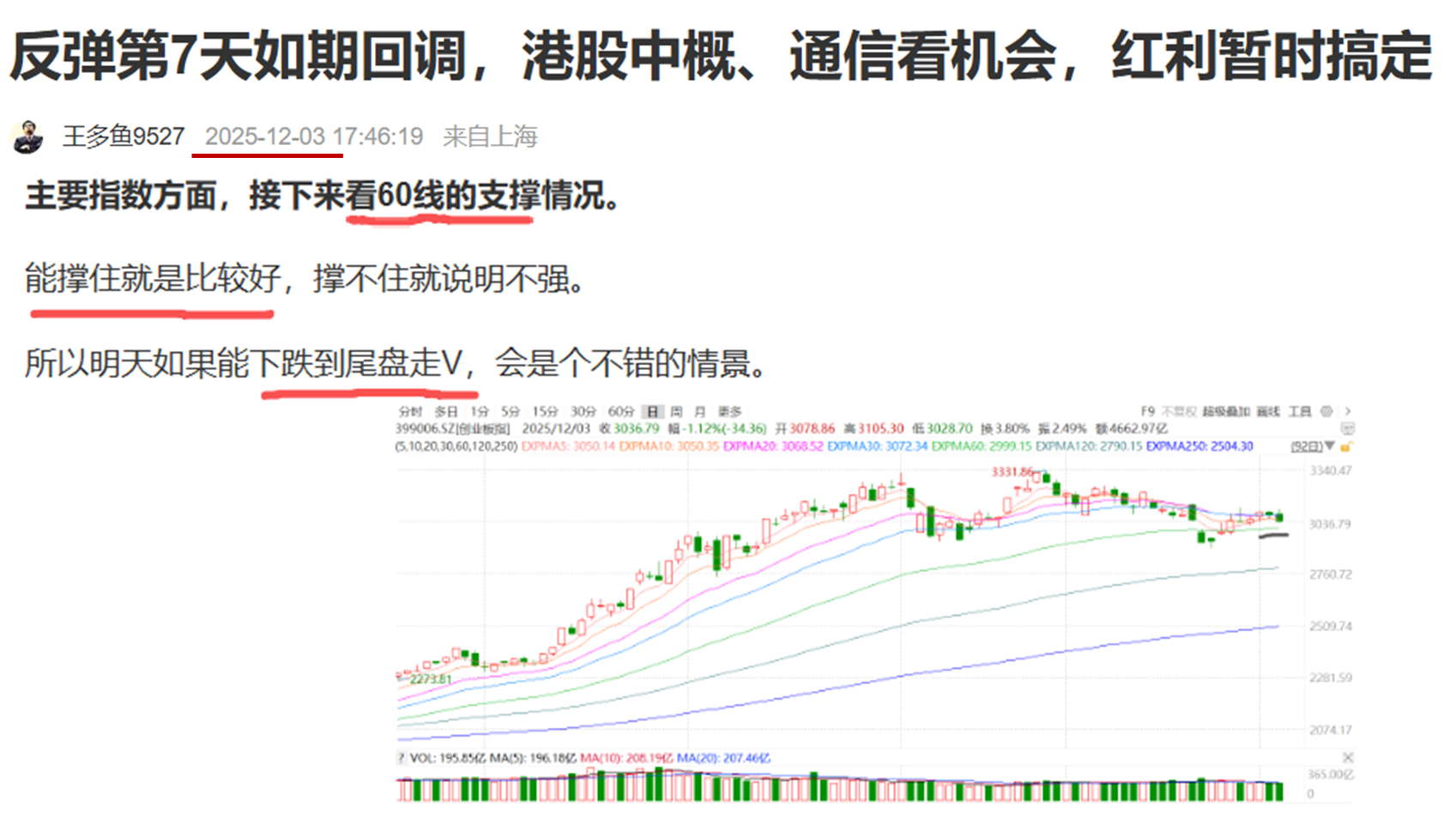昨天反弹第7天,A股在20-30日均线附近出现抛压下跌。