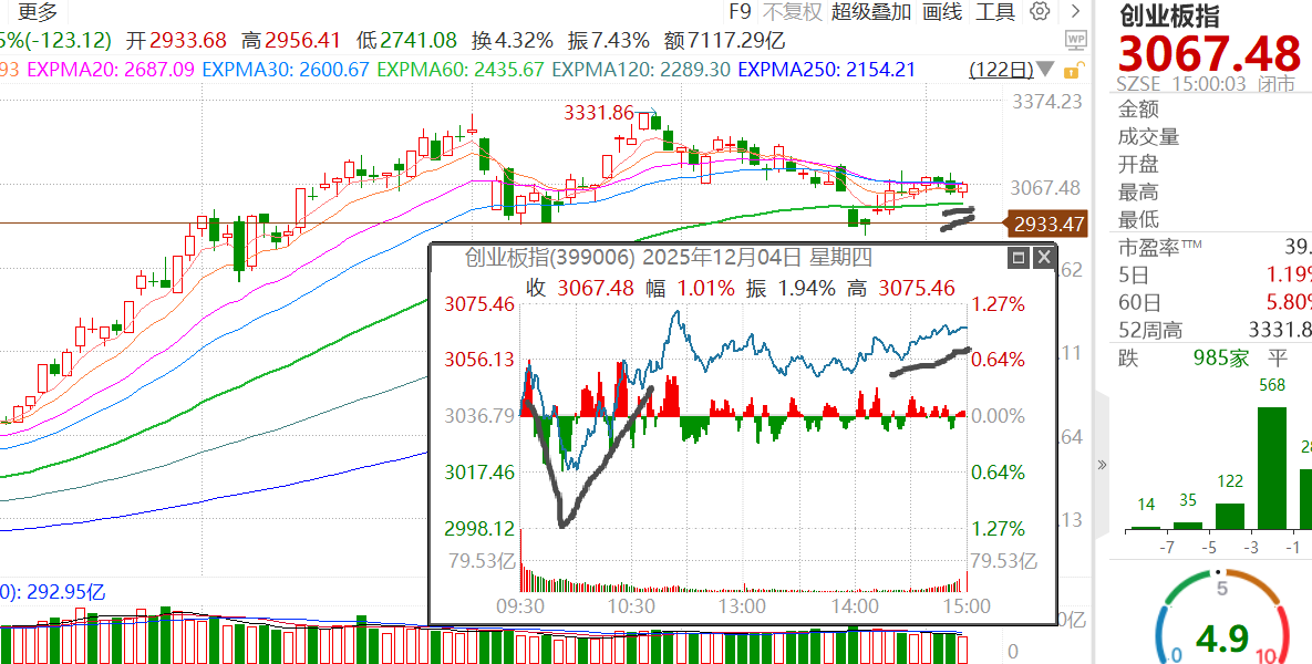 比预想中更好的是,今天早盘下跌后就V起来,并且扛到了尾盘没有回落。