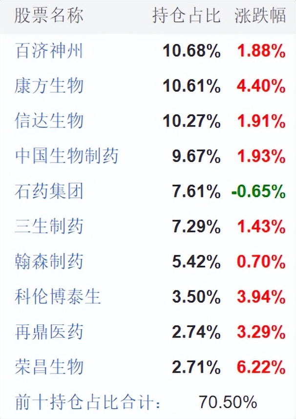 从持仓结构来看,基金重仓百济神州、康方生物、信达生物等创新药龙头企业,前十大权重股持仓占比超70%,充分体现出“强者恒强”的行业格局,能够精准把握板块核心机遇。