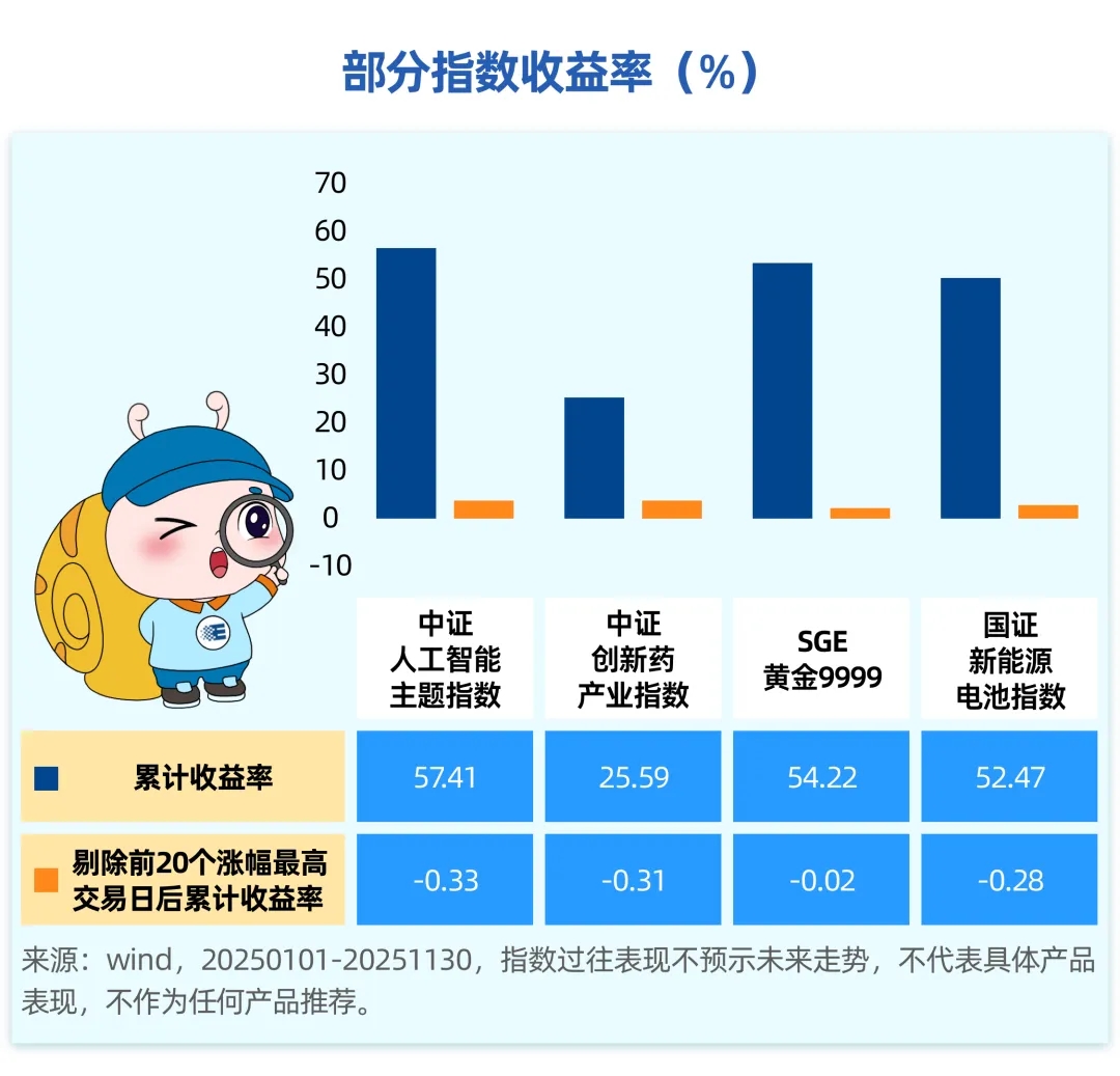 2025年以来,人工智能、创新药、黄金、电池等行业“你方唱罢我登场”,年内累计涨幅明显。