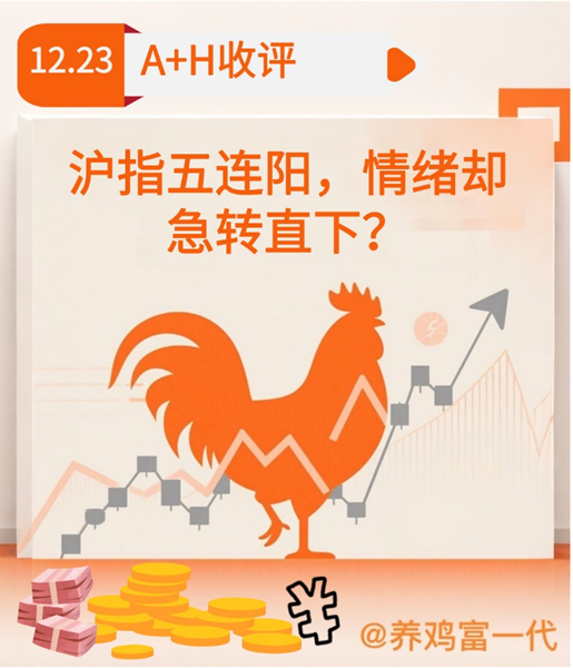 港股方面,今天震荡中泻力了,午盘向下走了走,最终尾盘拉回来一些。也很好理解,接下来几天,港股因为圣诞节会休市,没有北向资金加持,而到下周,估计又会有大资金出去冲凉,所以最后这几个交易日还是谨慎为妙。